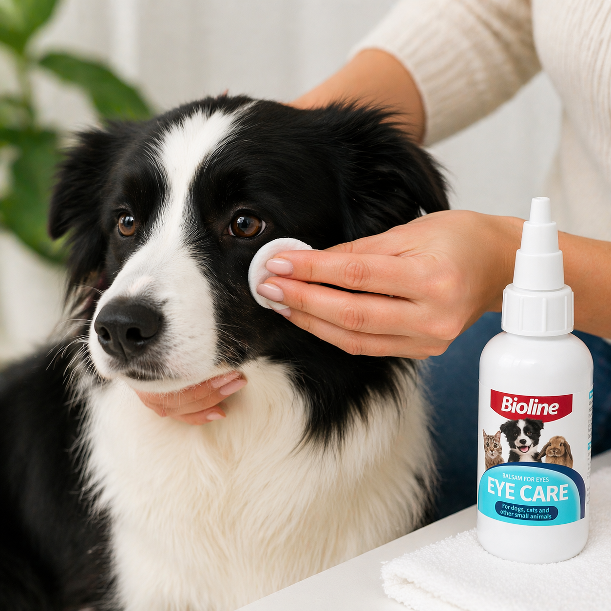 • Limpia suavemente los ojos de la mascota y la piel circundante.