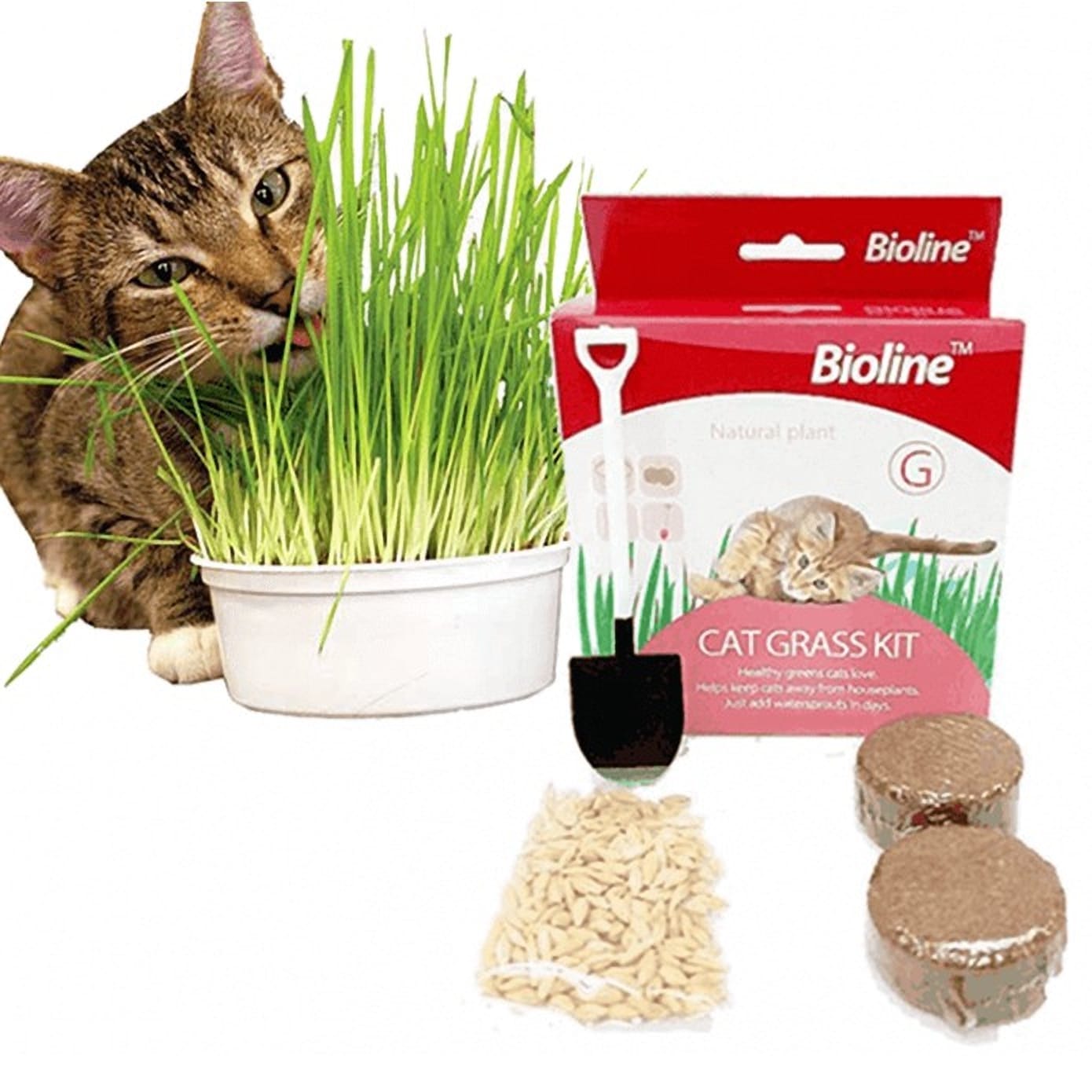 Kit de siembra de hierba gatera para que tu gato disfrute y controle las bolas de pelo. Incluye sustratos, semillas, palita y pote. Fácil de usar.