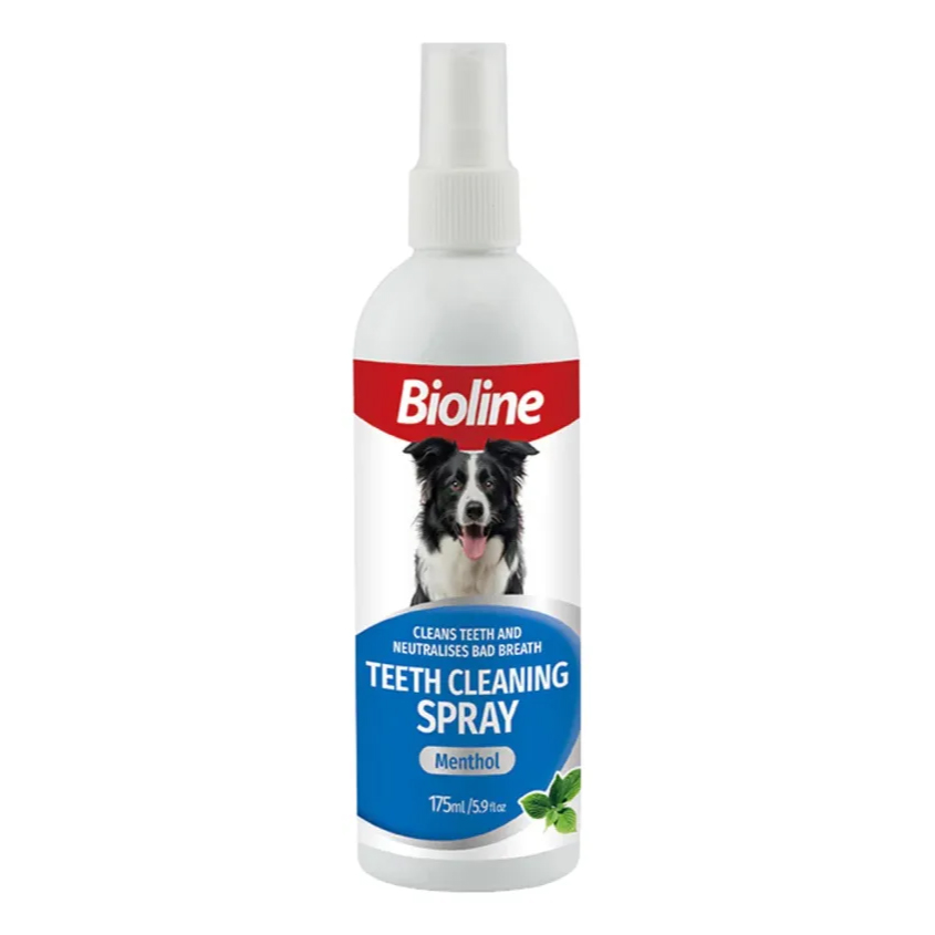 Spray de limpieza de dientes para perros y gatos es un poderoso limpiador de dientes en pulverizador para perros, este producto ayuda a prevenir la placa, cuida los dientes y proporciona un aliento fresco a nuestra mascota. Este Spray de limpieza de dientes es ideal para el cuidado dental de tu mascota.Bioline es una compañía especializada en el diseño de productos únicos para mascotas. Al ser amantes de las mascotas, siempre están desarrollando productos significativos, que cuenten historias y dirigidos a satisfacer sus necesidades y se adapten al estilo de vida de sus exigentes humanos.La línea de Bioline ofrece una completa gama de productos de aseo, herramientas y accesorios para el cuidado e higiene de tu mascota.