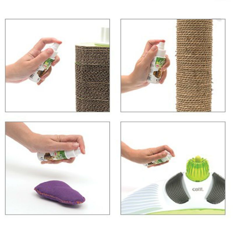 Catit Catnip para gatos en Spray es una entretenida forma de estimular a tu gato. Elaborado con esencia de catnip 100% canadiense, es perfecto para usarse en juguetes y rascadores. Solo basta con pulverizar un poco para estimular a tus gatos.¿Qué es el catnip?El catnip es una hierba natural que atrae y estimula a los gatos. Debido a un compuesto llamado nepetalactona que se encuentra en las hojas, tallos y semillas de la planta del catnip, el catnip estimula los instintos naturales de los gatos. Cerca del 65% de los gatos responden a la hierba gatera y el grado de sensibilidad varía entre los gatos.¿Son todos los gatos sensibles al catnip?Cerca del 65% de los gatos responden al catnip, aunque el grado de sensibilidad varía entre los gatos. Si a tu gato le gusta el catnip lo empezará a demostrar a partir de los 6 meses de edad.¿Para qué puedo usar el catnip?El catnip es una buena herramienta de entrenamiento para los gatos. Aplica catnip en el sitio donde quieres que tu gato juegue o rasque y mira cómo funciona la magia*. Usa catnip en spray en los juguetes de tu gato y postes rascadores, ¡así podrás proteger tus muebles de sus uñas!¿Cuánto tiempo dura el efecto del catnip?Los gatos responden al catnip durante unos 10 minutos. Después de 10 minutos, los gatos se vuelven temporalmente inmunes a los efectos del cantip. Después de 30 minutos aproximadamente, tu gato será capaz de disfrutar del catnip nuevamente. La aplicación de catnip fresco no va a reducir este lapso de 30 minutos.¿Cuánto catnip debería usar?Cada gato responde de una manera diferente al catnip. Comienza con una dosis pequeña y aumenta gradualmente la dosis si crees que puede ser Beneficioso. Si aplicas demasiado catnip, puedes provocar un comportamiento agresivo. Si su gato muestra signos de comportamiento agresivo, disminuye la dosis.Contenido:60ml