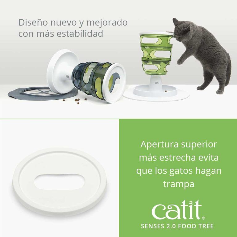 Los gatos pueden comer más de la cuenta si tienen comida fácilmente accesible. El Catit Senses 2.0 Food Tree es una solución para ayudar a los gatos a comer más lento, los anima a usar sus patas para obtener snacks a un ritmo mucho más saludable.