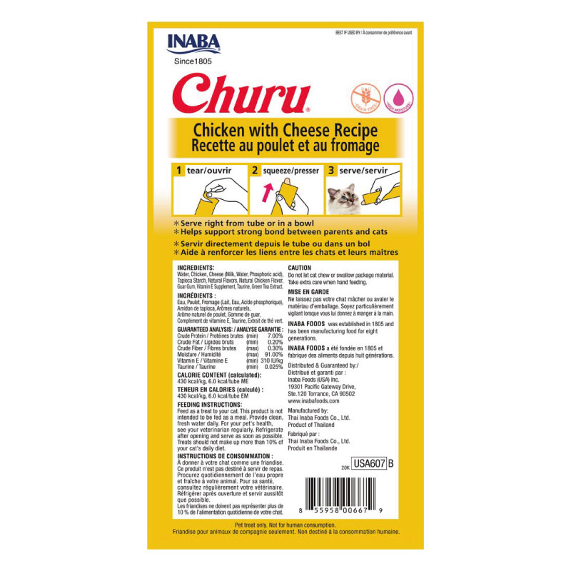 Inaba Churu Gato Sabor Pollo y Queso 4 Tubos