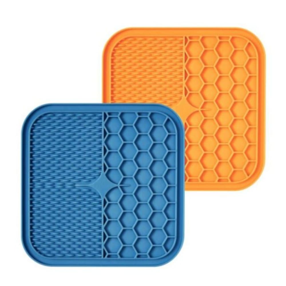 Lick Mat es una alfombrilla de silicona que estimula el lamido de tu perro y gato, un comportamiento que provoca la segregación de hormonas calmantes. Hace que las comidas pequeñas duren más tiempo, lo que lo convierte en un complemento perfecto para los que necesitan perder peso o comer más lento.