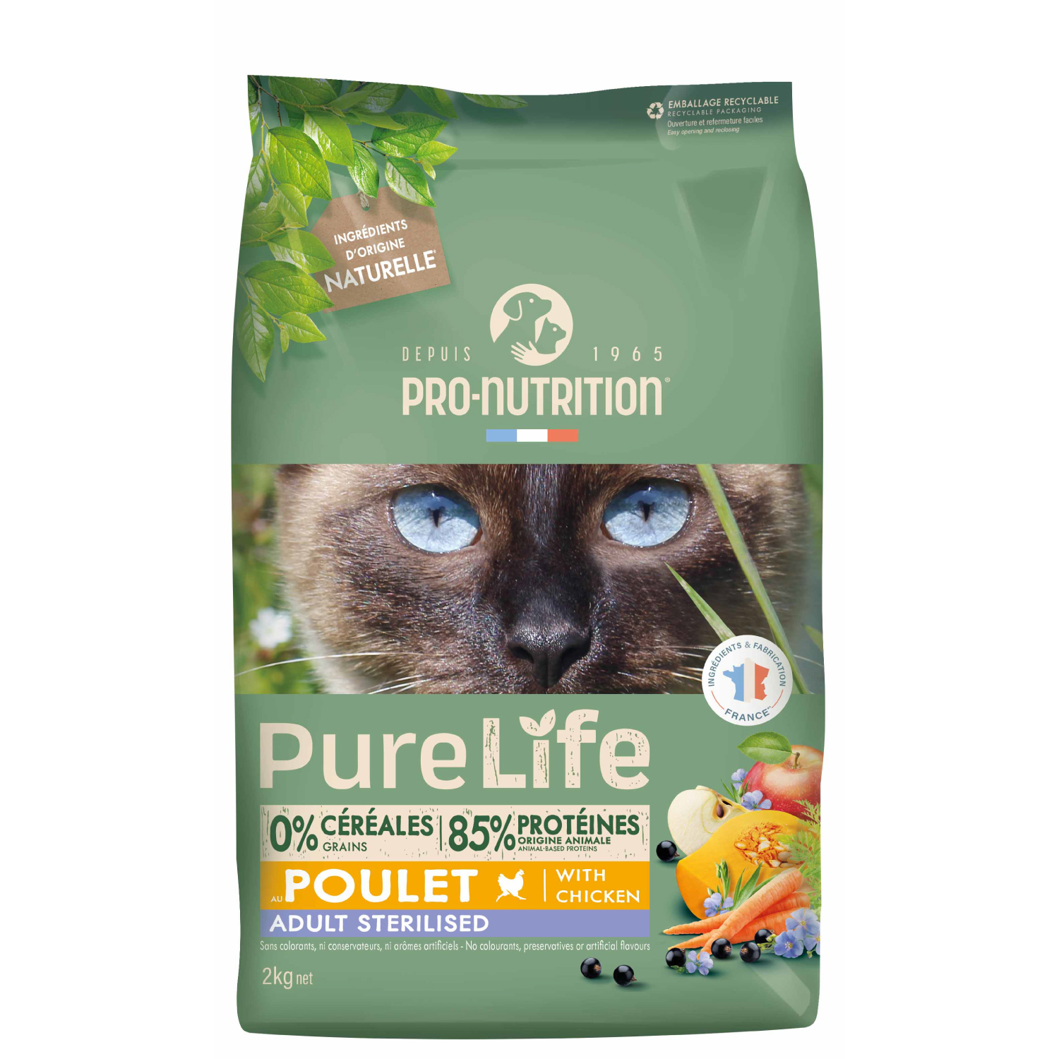 Pure Life for Cats Sterelized Pollo es un alimento completo indicado para gatos adultos esterilizados y/o con tendencia al sobrepeso. Indicado también para gatos adultos con sensibilidad alimentaria. Formulado con pollo. Favorece la sanidad urinaria y garantiza al tiempo que se limita el aumento de peso. Aporta un bienestar digestivo cotidiano. Formulado sin cereales ni gluten, esta receta favorece una excelente tolerancia digestiva. Son adecuadas para gatos sensibles a los cereales.