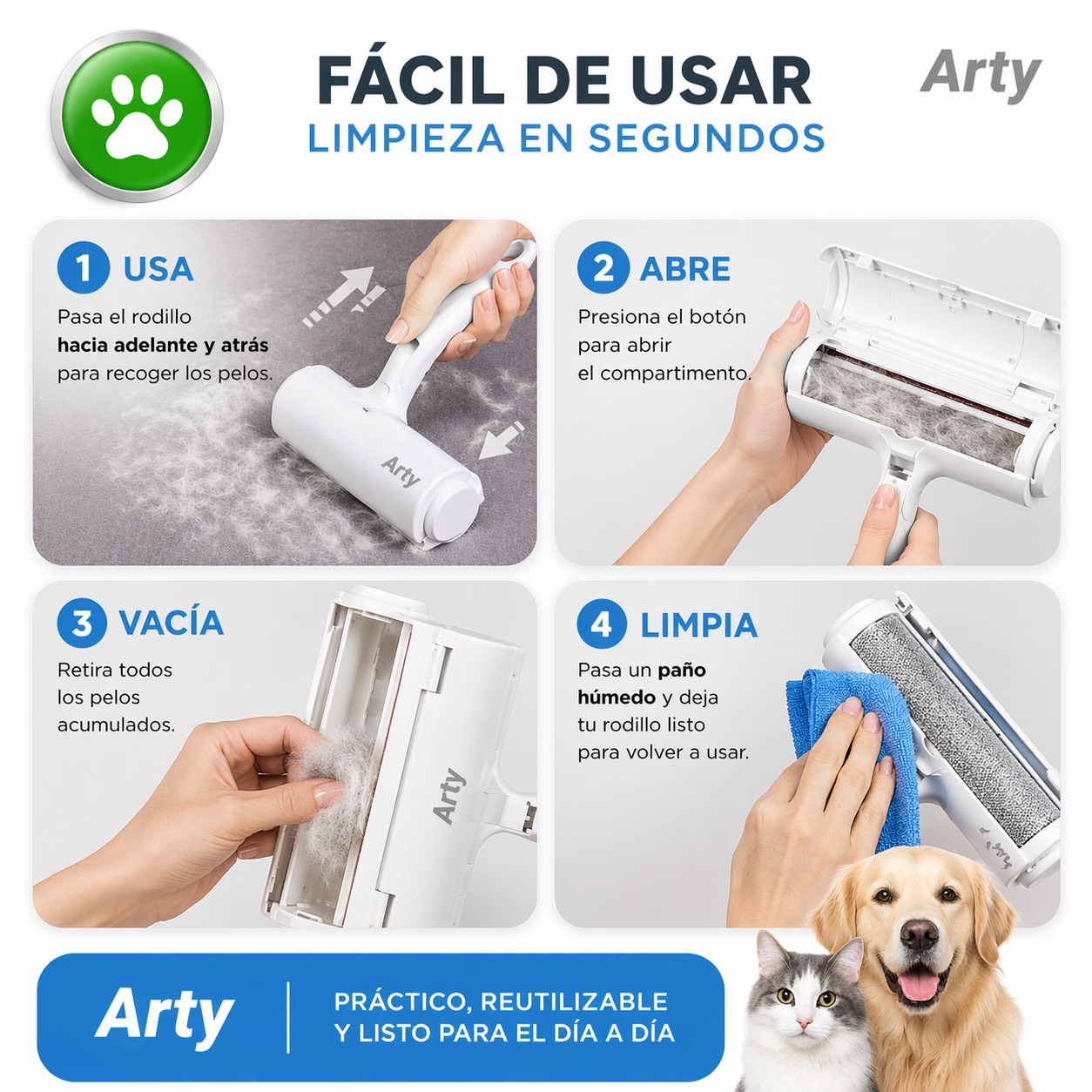 Dueños de perros y gatos que buscan una solución rápida, práctica y reutilizable para mantener su hogar limpio todos los días.