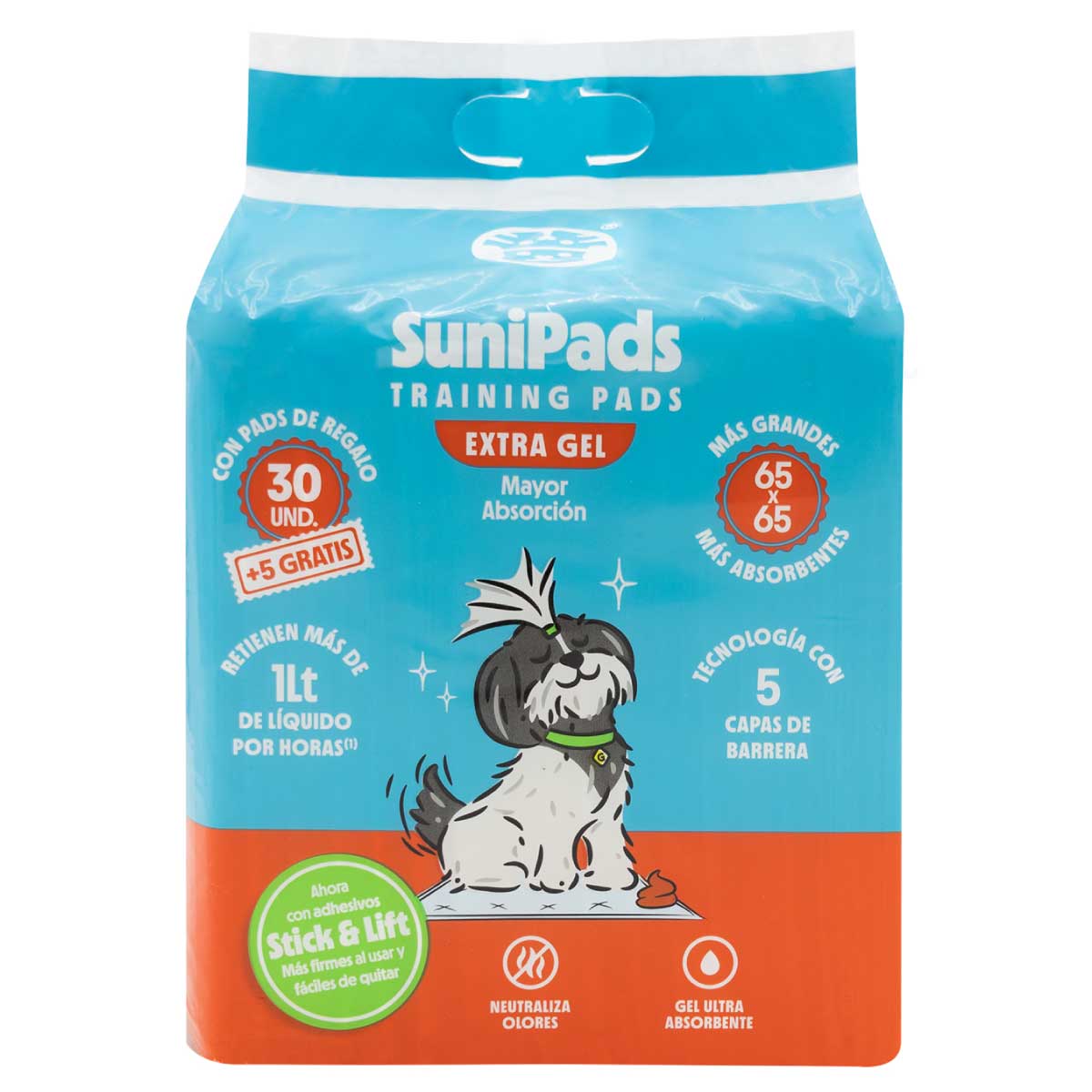 SuniPet Trainning Pads son unas sabanillas ultra absorbentes perfectas para enseñar a tu cachorro donde hacer sus necesidades. Absorben gran cantidad de líquido hasta más de medio litro de liquido por más de 12 horas sin fugas.