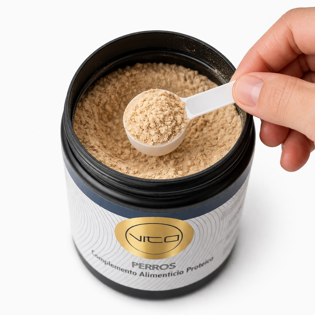 VITO Senior es un suplemento para perros que enriquece su comida con proteínas, vitaminas y minerales, mejorando pelaje, huesos, y sistema inmunológico.